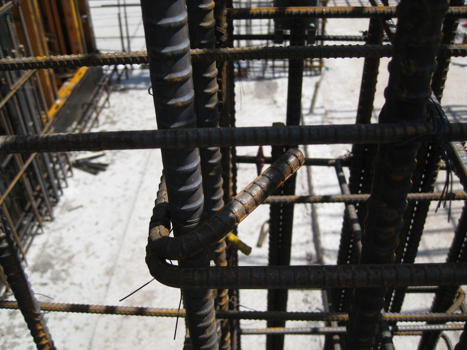 띠철근은 보통 가는 철근을 쓰기 때문에 구부림 최소지름은 주근보다는 작습니다. 만일 D13인 철근을 띠철근으로 쓴다면, 구부릴 때 지름이 50mm인 원통을 끼워야 합니다.