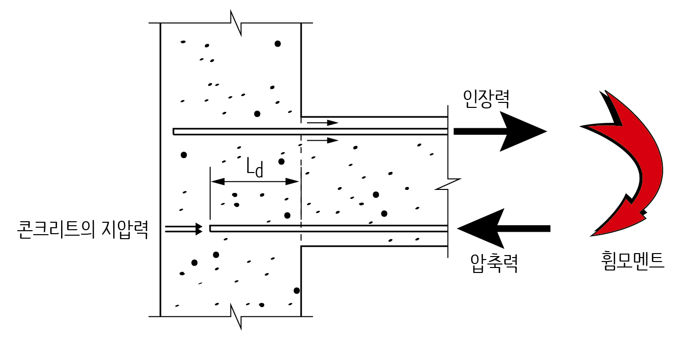 압축을 받는 이형철근의 정착길이는 현장에서 많이 적용하지 않습니다. 보의 하부근도 지진이나 바람과 같은 수평력이 작용하면 인장이 작용할 수도 있기 때문에 인장 이형철근의 정착길이를 적용합니다.