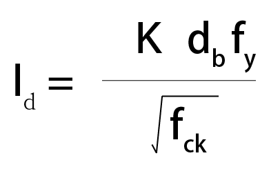 K는 철근이 배치되는 여러가지 요건을 감안해서 결정하게 됩니다. 이 K값 때문에 정착길이 계산이 복잡해지는데 이 K값을 제외하면 철근의 공칭지름, 철근의 설계기준 압축강도, 콘크리트의 설계기준 압축강도가 영향을 미치는 것을 알 수 있습니다.