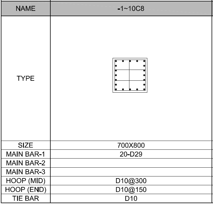 2) 기둥 최대 단면치수 : 700 × 800에서 800