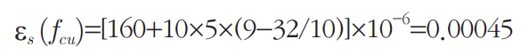 예를 들어 설계기준강도 24Mpa인 일반 콘크리트의 기본 건조수축 변형률을 계산해보기 위해 εs(fcu)를 먼저 계산해 보면 다음과 같이 계산할 수 있습니다.