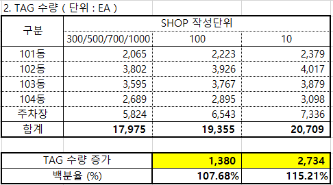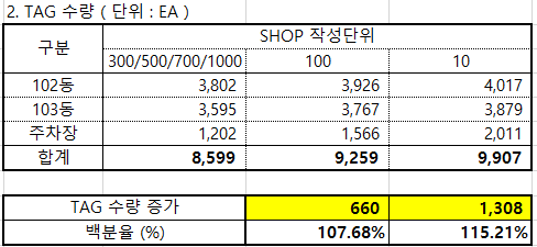 위의 결과를 가지고 각각의 현장별로 어떻게 가공길이를 단순화할지 판단하는데 쓸수도 있지 않을까 생각됩니다. 단순화 방법별로 물량 절감 비율과 TAG의 수량 증가율은 비슷하게 나타날 것입니다.
