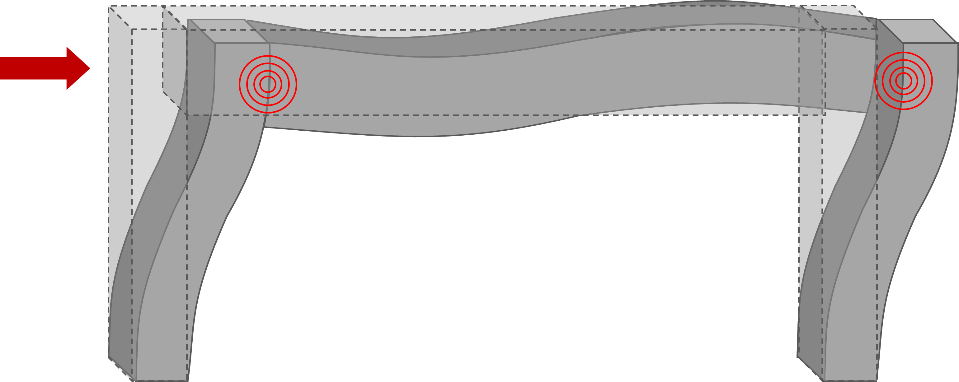 지진력이 점점 커져서 건축물에 힘을 가하게 되면 기둥이나 보의 단부에 소성힌지가 생기고, 가해지는 힘이 더 이상 증가하지 않고 일정한 상태에서도 점점 더 회전하게 되는 것입니다.