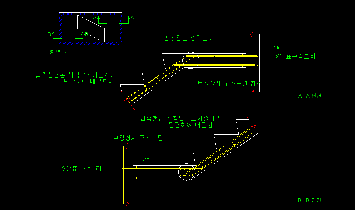 계단 배근상세도 사례를 나타내면 다음과 같습니다.