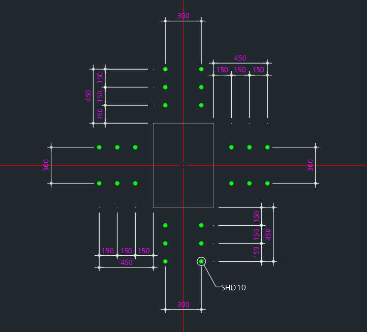 위 사례는 SHD 10mm짜리가 수직으로 두 가닥 들어가는 형태로 배치하는 것으로 되어 있습니다.