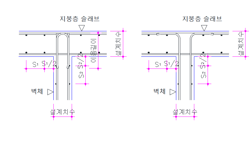 상하층 철근의 위치가 어긋날 경우는 다음 블로그를 참고하시기 바랍니다.